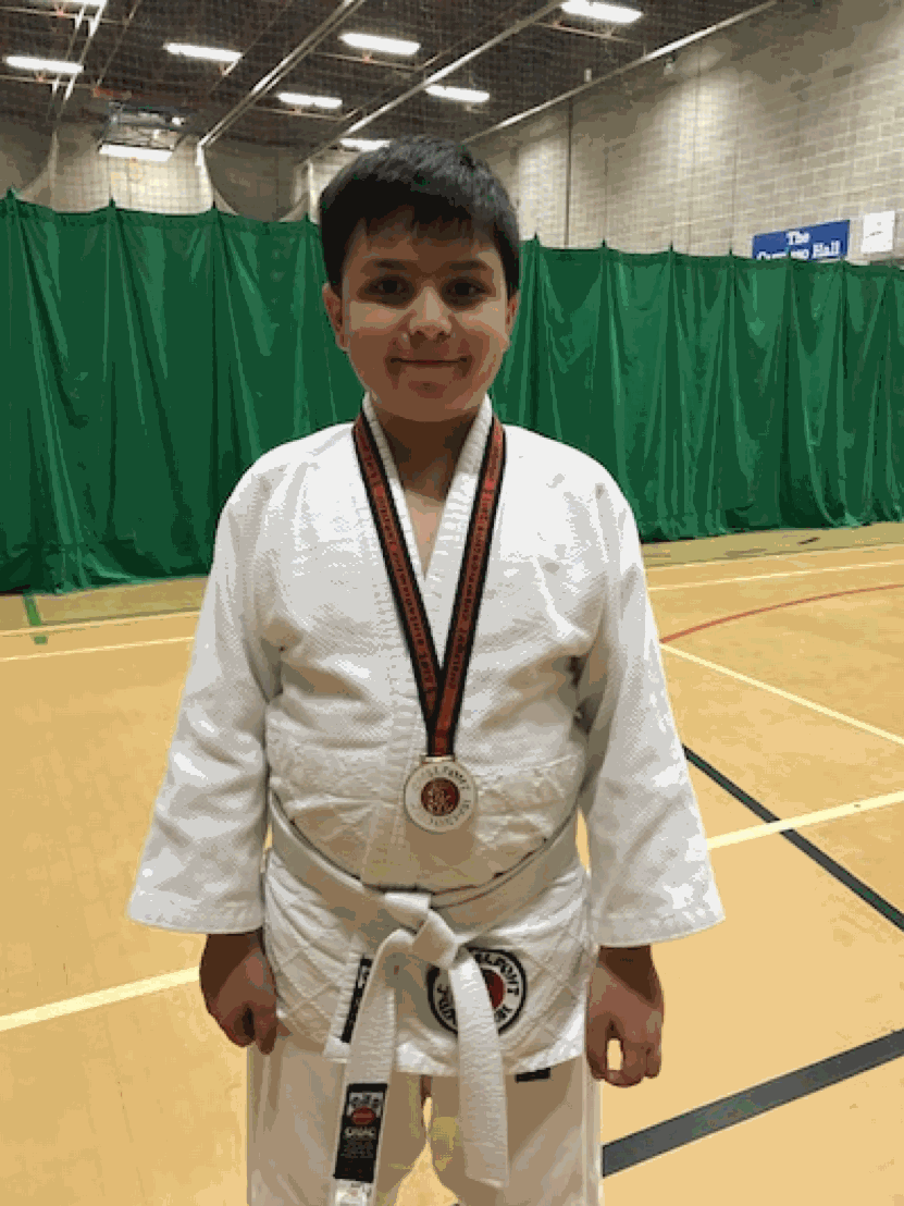 Paris only started Judo in December after a lot of nagging by Sensei who met him a few times at his father’s business. But he bravely entered our Championships and took the Gold! |