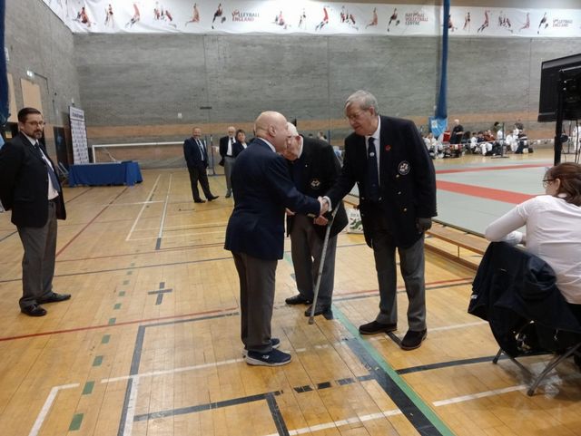 Next up the following week was the BJC Closed Nationals and at this event, Sensei was awarded BJC Referee International Grade. Here you can Sensei shaking the hand of Paul Laskey 7th Dan just after having been awarded it by G. R. Mealing 8th Dan, BJC Vice-President (just behind).