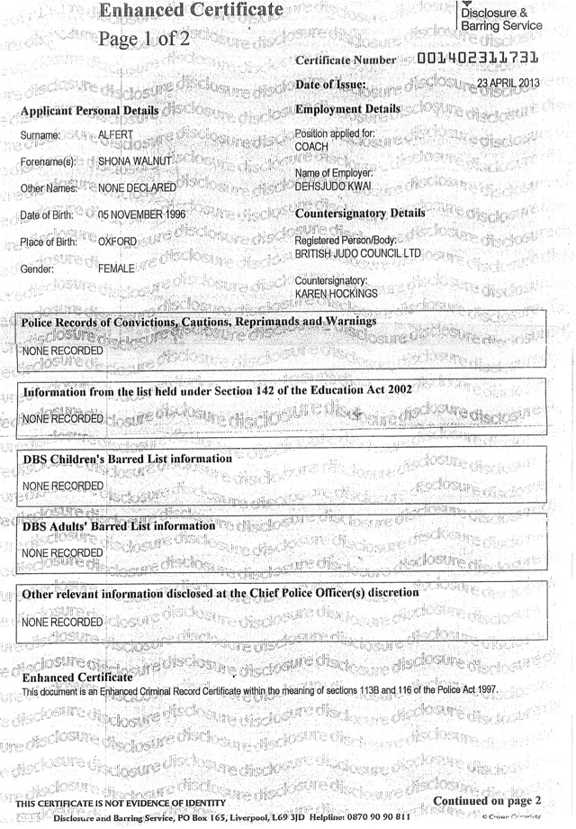 Disclosure & Barring Certificate (formely CRB)