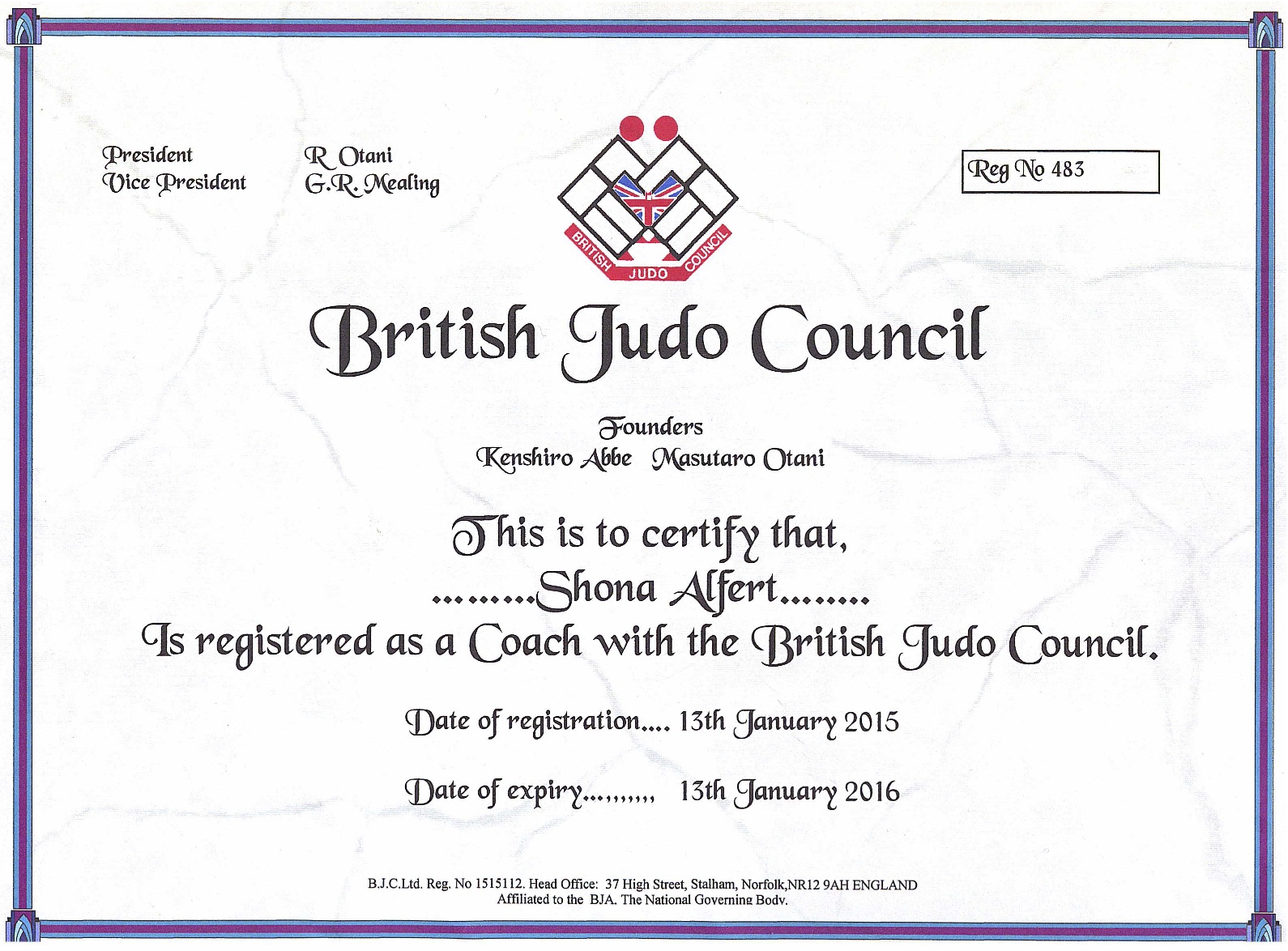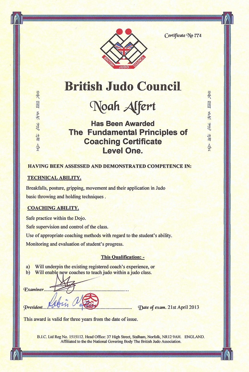 BJC Coach Certificate