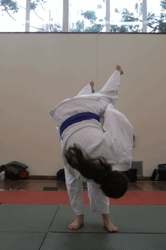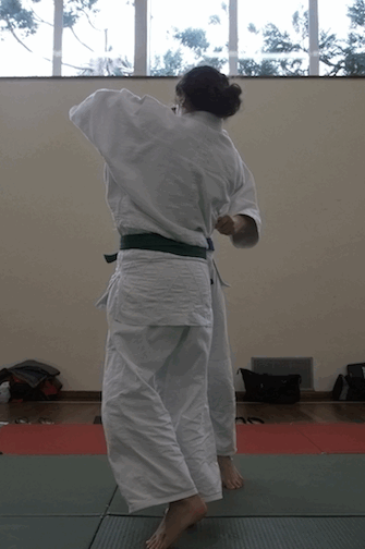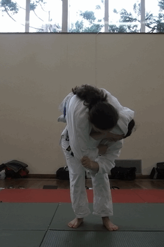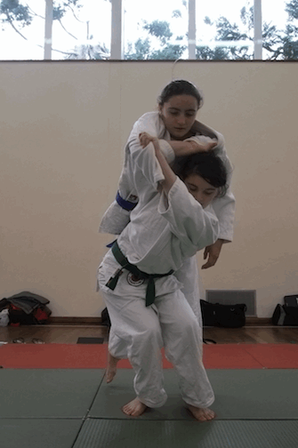 In this clip one can see Jessica 'feint' with an Advancing Foot Sweep which her opponent responds to by withdrawing her foot (her left). This has the consequence of momentarily putting her off-balance and before she can correct this Jessica seizes the opportunity and turns in for her signature throw.